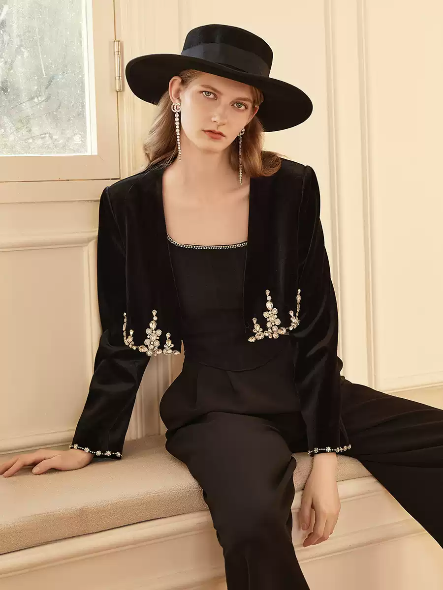 A high-end thickened black velvet short coat
