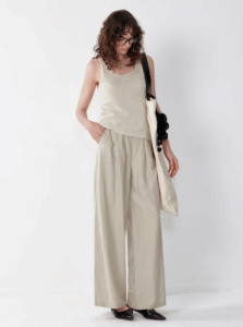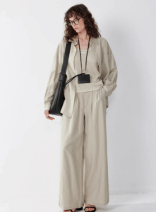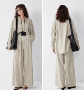 A long-sleeved shirt and wide-leg pants suit for ladies