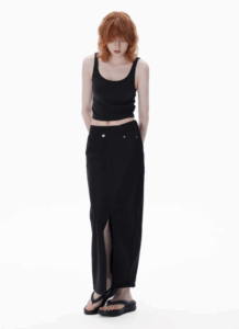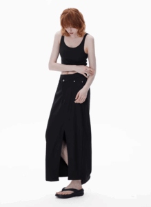 a long suit dress with a slit design