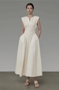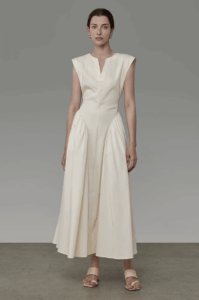 Architectural sleeveless, whisper-luxe fit.