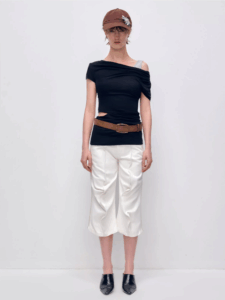Asymmetric edge, effortless drape.