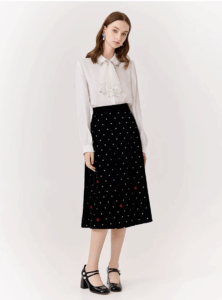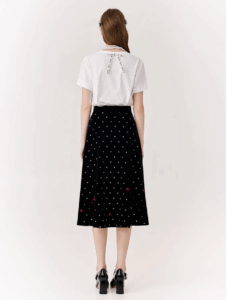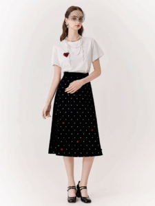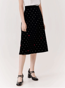 Black velvet polka dot skirt