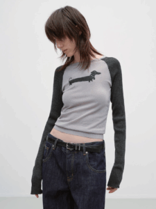 Dachshund shoulder-length long-sleeved knitted T-shirt