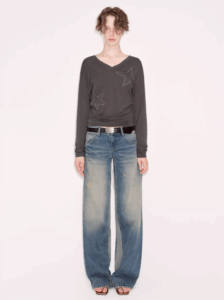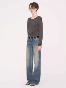 Design-savvy patchwork distressed washed jeans