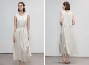 Elegant pleated round-neck dress