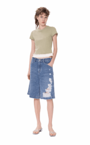 Fitted and shoulder-fitting short-sleeved T-shirt