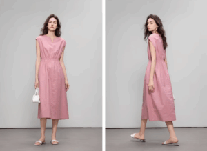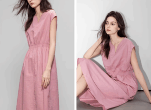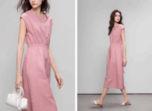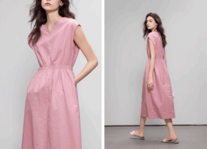 Retro linen dress, artsy vibe.