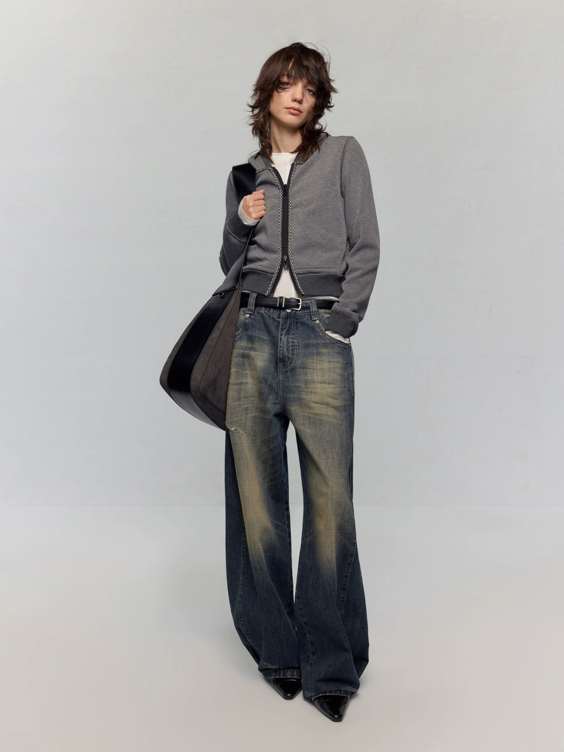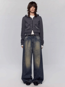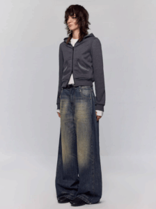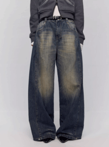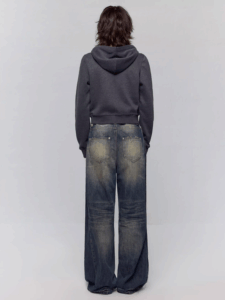 Low-waisted bamboo-jointed loose wide-leg jeans