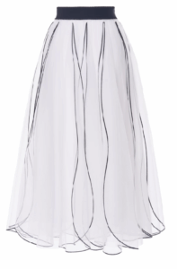 The romantic petal-layered long dress effortlessly creates a whimsical atmosphere.