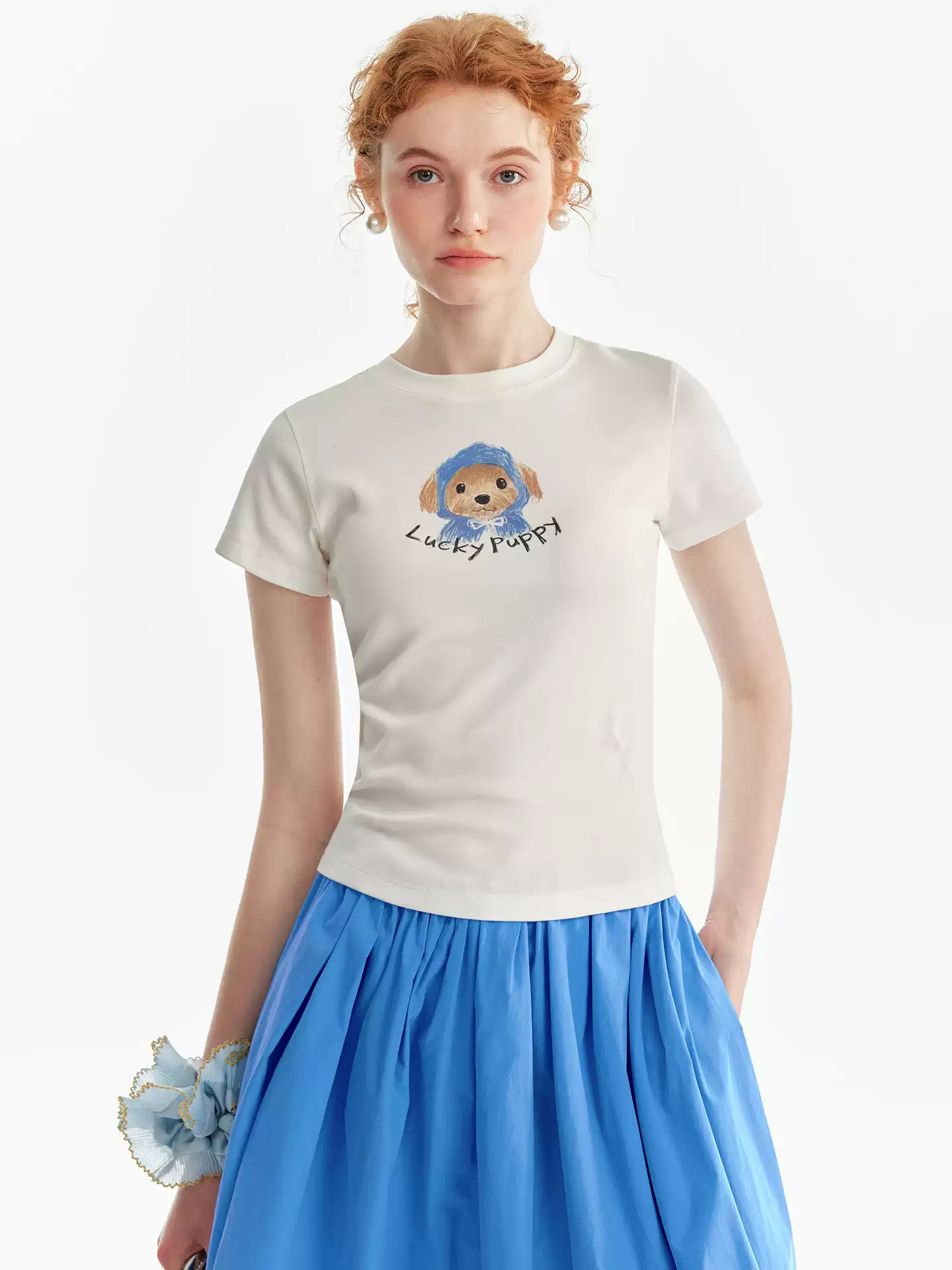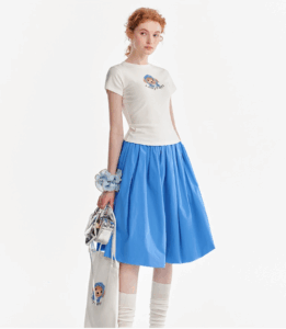 Printed short-sleeved flower bud dress set