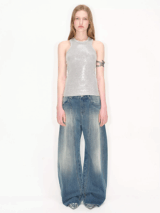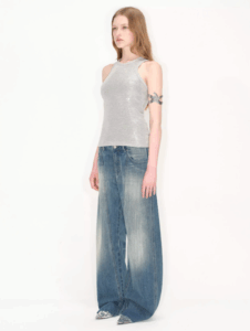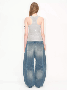 retro washed lightning patterned curved jeans for women