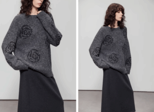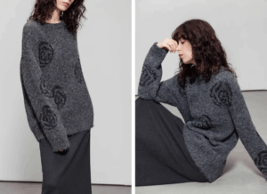 Romantic sequined rose round-neck knitted woman