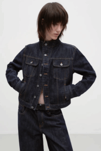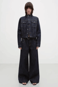 Workwear minimalism, cropped cool.