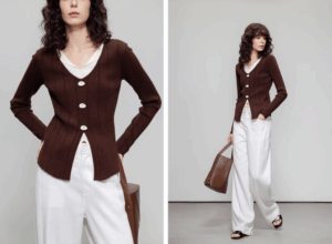 Color-clash twinset, faux V-neck magic