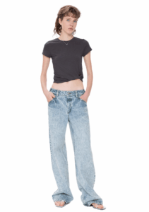 washed low rise straight leg jeans for women